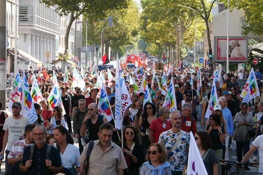 Le 18 septembre nous étions 20 000 manifestantes dans les rues de Lyon, 15000 à Saint-Étienne, 3000 à Roanne, 1500 à Bourg-en-Bresse… A Lyon la grève était majoritaire dans les collèges et lycées.